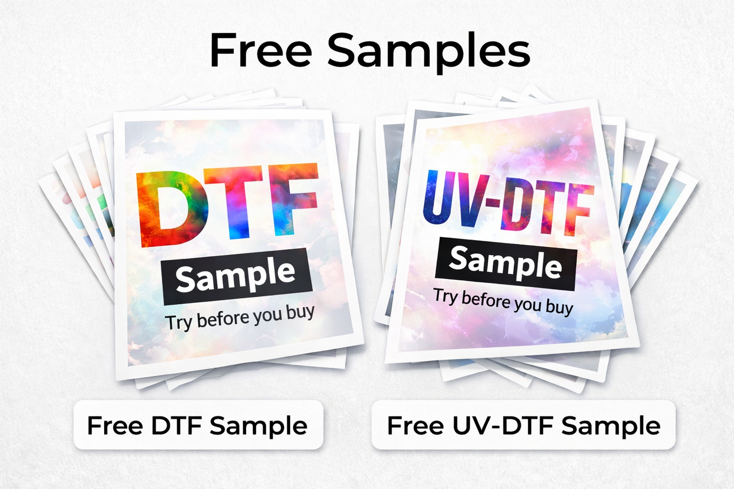 Order a FREE DTF or UV-DTF sample and test the quality before placing a full order.